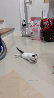 飼い主のズボンのにおいを嗅ぎ思わずこの顔